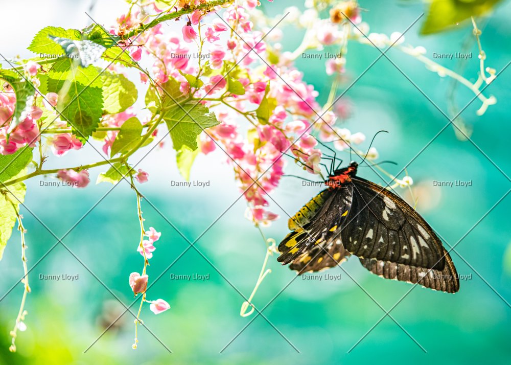 Richmond birdwing butterfly landed on pink flowers